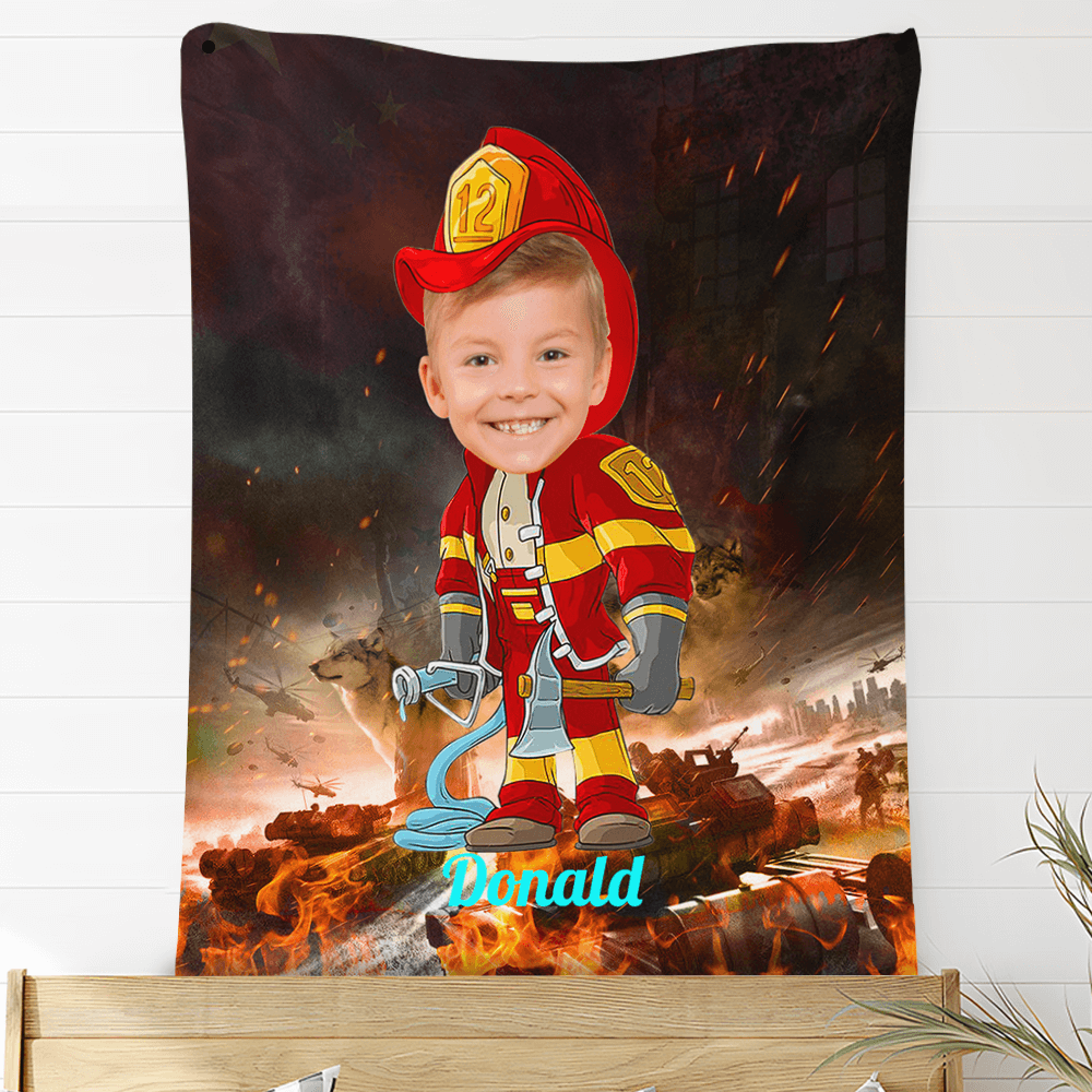 Custom Photo Blankets Personalized Photo Blanket Fleece Firman Fighting Painting Style Blanket
